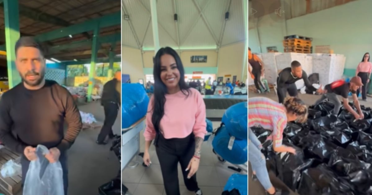 图像中显示了Cuervo、Ja Rulay和Teresa Padrón,El Taiger的前经纪人,他们正在卸下箱子和袋子,并鼓励志愿者“利用影响力做积极的事情”。