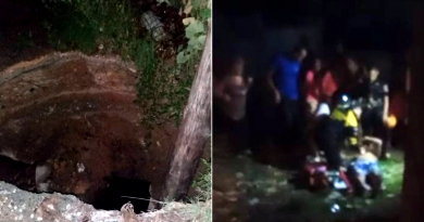 男子在瓜纳巴科亚因哈瓦那水务局挖开的洞里摔倒。