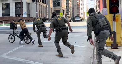骑自行车的快递员在ICE特工面前侮辱特朗普,并成功在追逐中逃脱。