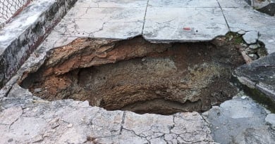 哈瓦那的路面崩塌:一名男子和他的摩托车在维达多的一处坑洞中跌落。